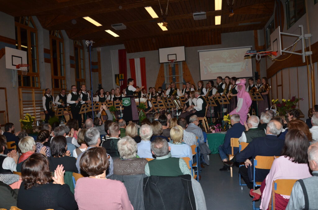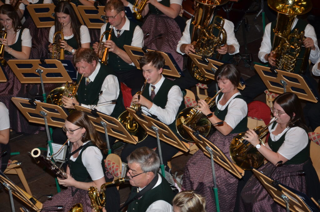 Von unserem Jugendorchester, unter der Leitung von Daniela Wildauer, bravourös eröffnet, gaben wir im ersten Teil des Konzertes Stücke aus der Vergangenheit zum Besten, passend zu unserem Gründungsjahr 1840. Sogar eines der ersten gespielten Stücke unseres Musikvereines, „Pange Lingua“, brachten wir den Zuhörern in der Originalbesetzung zu Gehör. Der zweite Teil des Konzertes spannte einen modernen Bogen von den Melodien von „Dirty Dancing“ bis hin zu „Coldplay in Symphony“. Zwischen den Stücken führte unsere Konzertsprecherin, Maria Kanzler, durch das Programm.