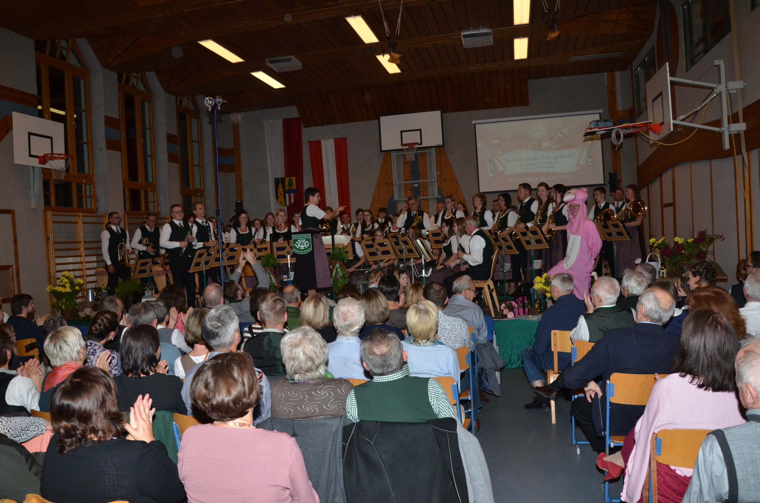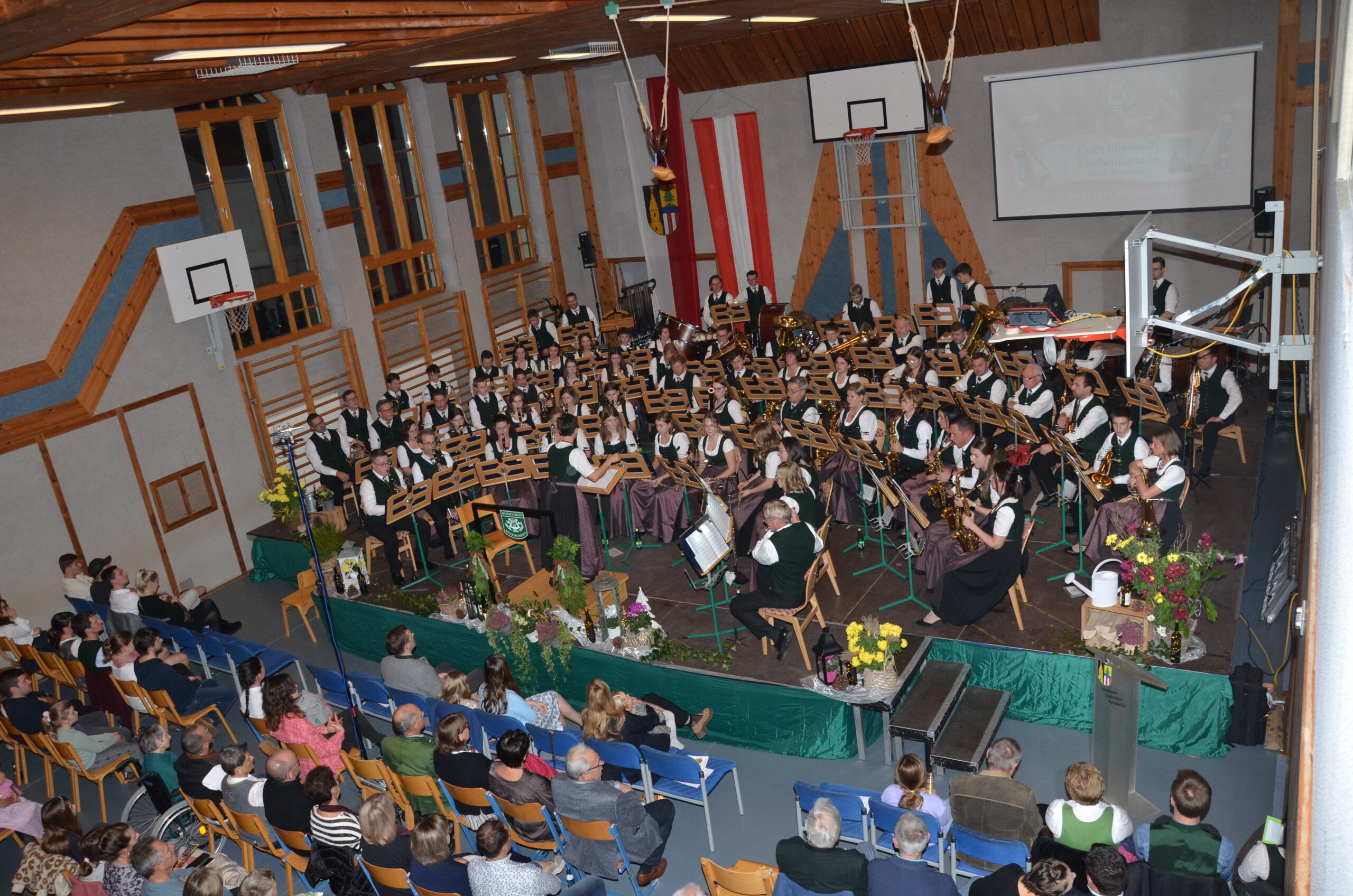 Von unserem Jugendorchester, unter der Leitung von Daniela Wildauer, bravourös eröffnet, gaben wir im ersten Teil des Konzertes Stücke aus der Vergangenheit zum Besten, passend zu unserem Gründungsjahr 1840. Sogar eines der ersten gespielten Stücke unseres Musikvereines, „Pange Lingua“, brachten wir den Zuhörern in der Originalbesetzung zu Gehör. Der zweite Teil des Konzertes spannte einen modernen Bogen von den Melodien von „Dirty Dancing“ bis hin zu „Coldplay in Symphony“. Zwischen den Stücken führte unsere Konzertsprecherin, Maria Kanzler, durch das Programm.