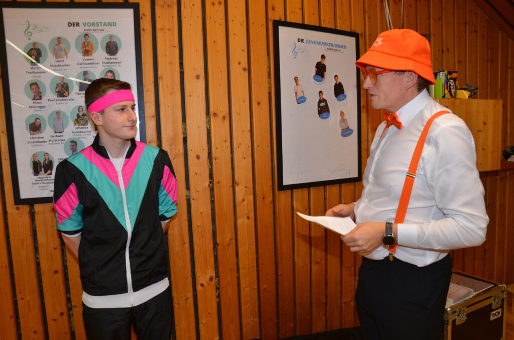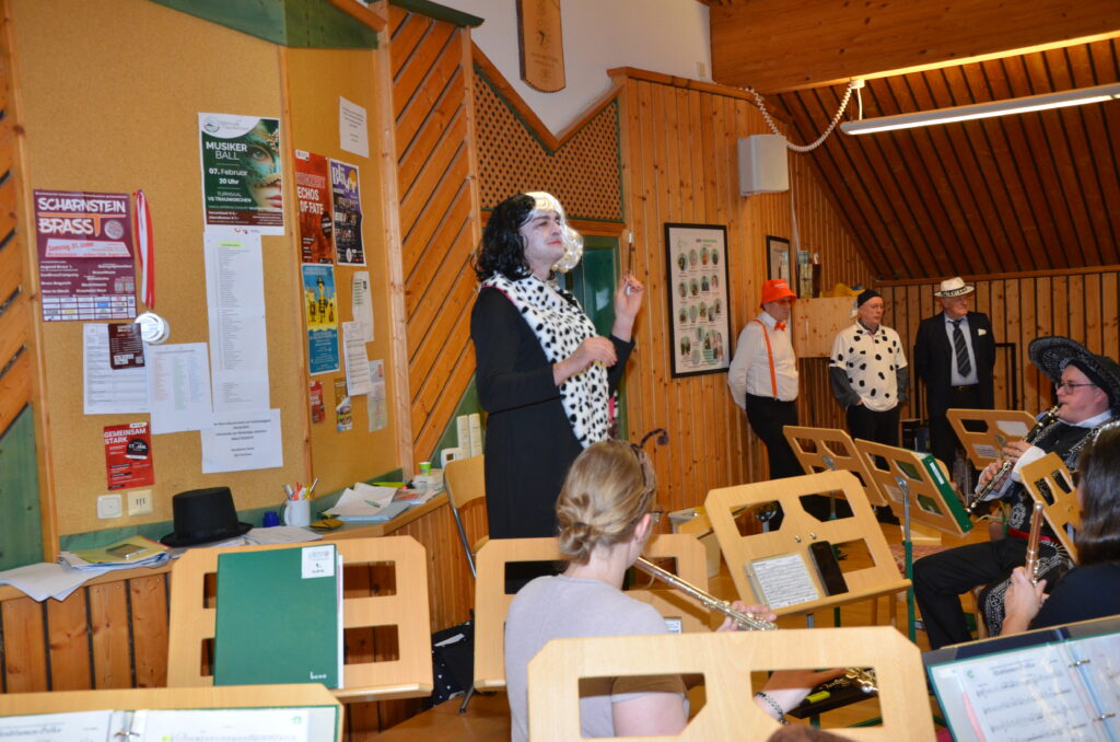 Die diesjährige, verkleidete Musikprobe stand ebenfalls ganz unter dem Motto „Geburtstagsfeier“, denn wird wurden schon wieder zum Mitfeiern eingeladen. Diesmal waren Stabführer-Stellvertreter Gerhard Hofstätter (60 Jahre) und Flügelhornist Stephan Nussbaumer (20 Jahre) an der Reihe.