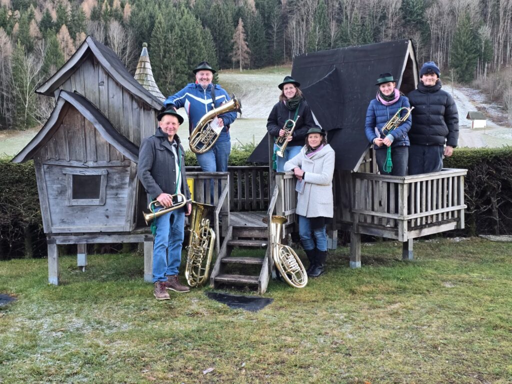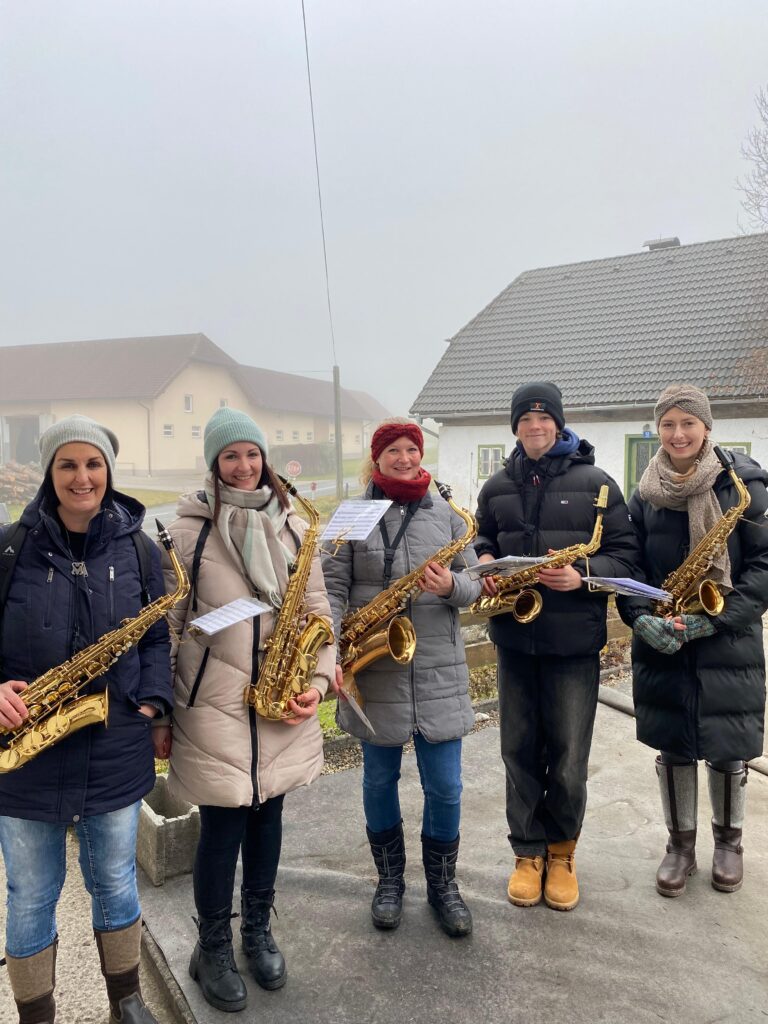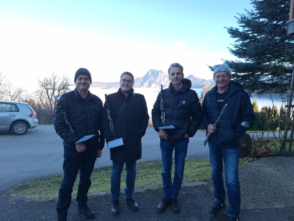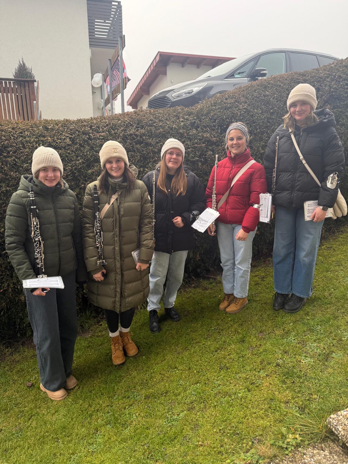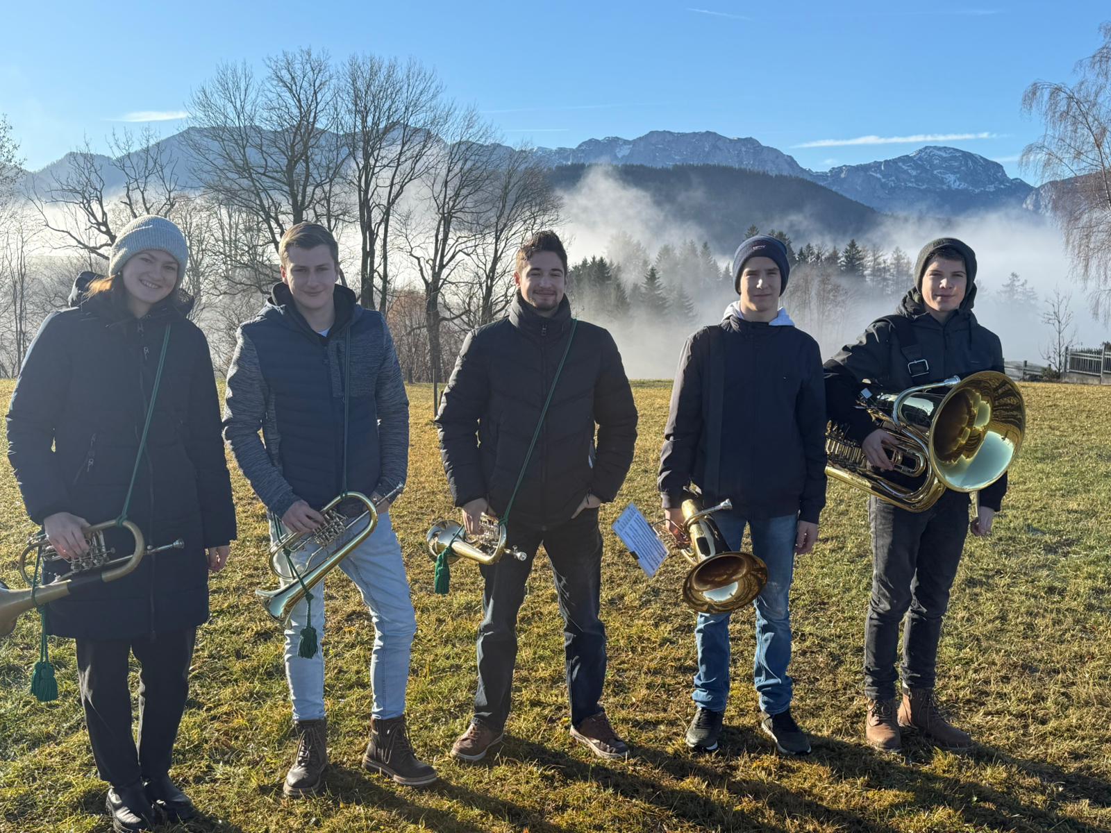 Juniorleistungsabzeichen: Lukas Holzinger (Schlagwerk), Jakob Leitner (Tenorhorn), Pia Moser (Querflöte), Maximilian Weißmann (Trompete mit ausgezeichnetem Erfolg)